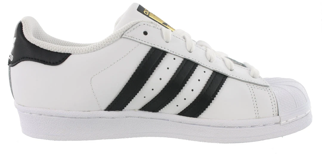 A style icon is remade for younger feet in these adidas Originals Superstar shoes. The junior shoes have all the classic details, including the smooth leather upper, rubber shell toe and gum rubber outsole.
