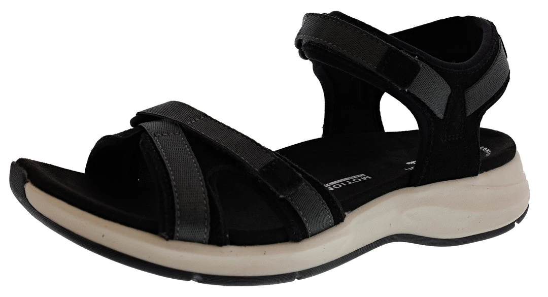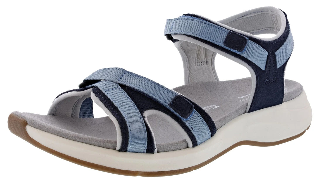 Sports-casual sandal Solan Drift teams a targeted step-propelling Motion Tread sole with a contoured footbed for improved comfort in every step. Unique webbing and design details come together in the navy combi upper to create an individual athleisure-inspired look.