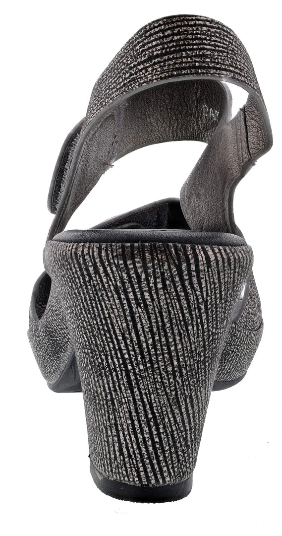 The Patrizia by Spring Step DADE-PARTYÂ quarter strap sandal features a beautiful wide band design and adjustable hook and loop straps for easy comfort. The polished metal ornaments add a dressy touch to this sophistication-inspired sandal on a comfort heel with a platform.