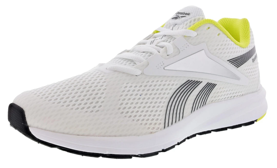 The road stretches before you. Accept the challenge in these best shoes for interval training. The breathable mesh upper is reinforced with supportive overlays. These colorful running shoes also these Reebok white sneakers mens keeps you comfortable from start to finish.