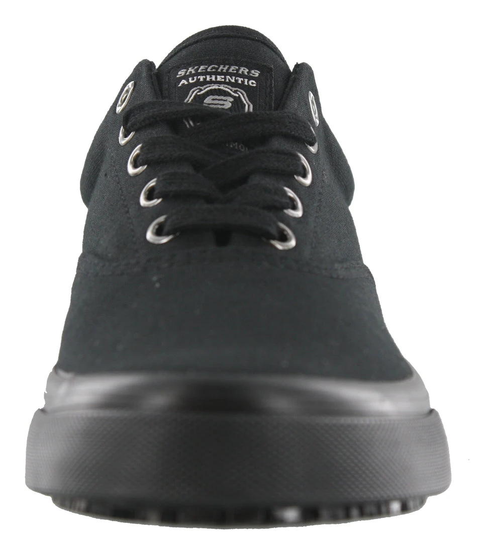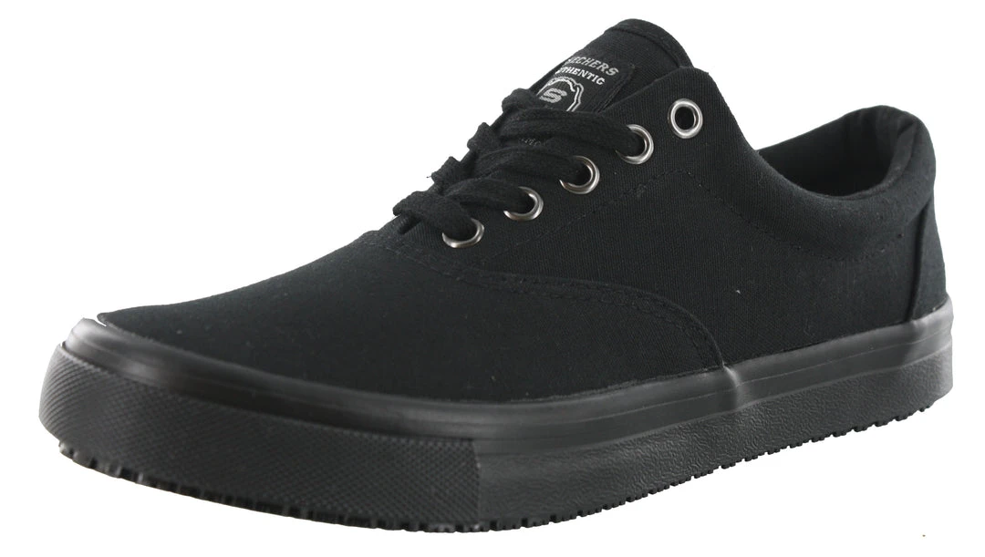 Skechers slip resistant shoes womens a classic look takes on a full day’s protection and comfort with the Skechers work shoes womens non slip: Sudler SR shoe. Soft woven canvas fabric upper in a lace up classic casual work slip resistant sneaker with stitching accents and Memory Foam insole.
